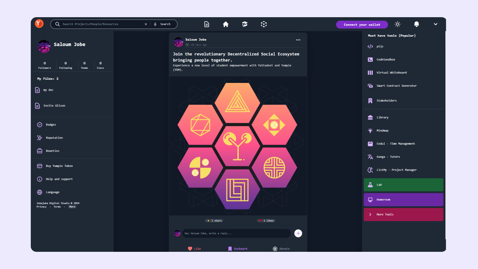 YOSTUDENT virtual learning platform is blockchain based. An educational blockchain platform that enables students to create and participate in a virtual world of study.